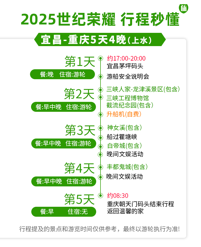【世纪荣耀】宜昌到重庆上水5天4晚