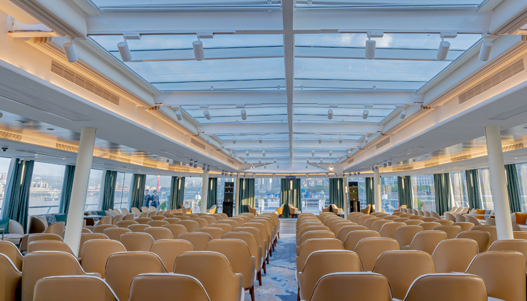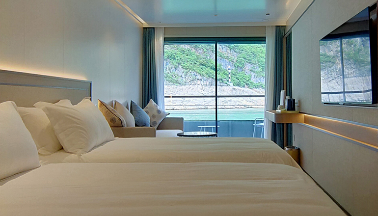 “阿波罗号”斥资1.5亿,建造耗时两年,采用世界上最先进的电力推动系统,双层船底确保航行安全,按照海洋邮轮理念设计,中庭2部双向垂直电梯,多种房型自由选择,高端的布局和古希腊装饰风格,被誉为长江三峡上的“典藏珍品”。船长120米、宽19米、净高23米,是一艘全新豪华的移动五星级酒店。